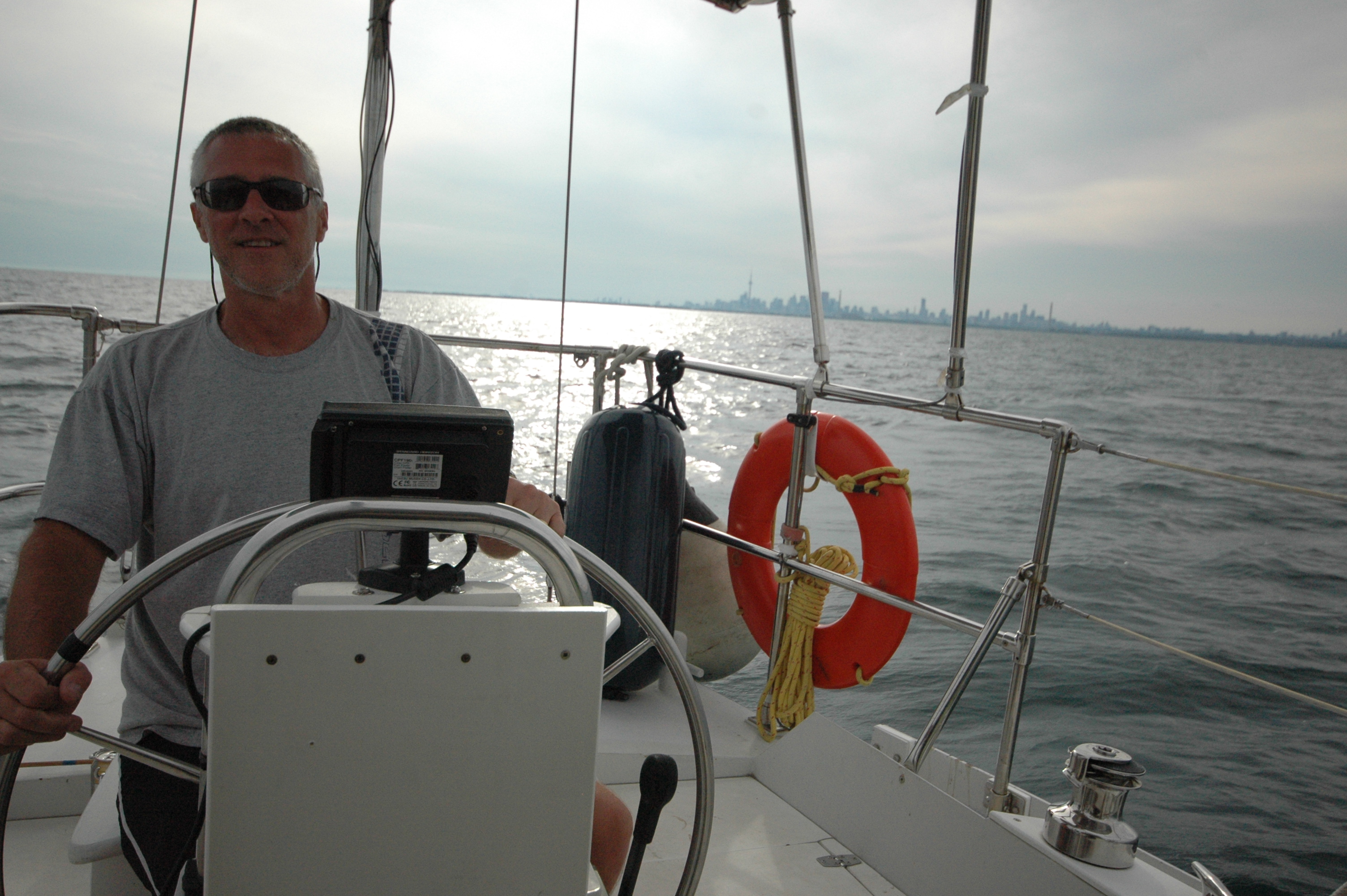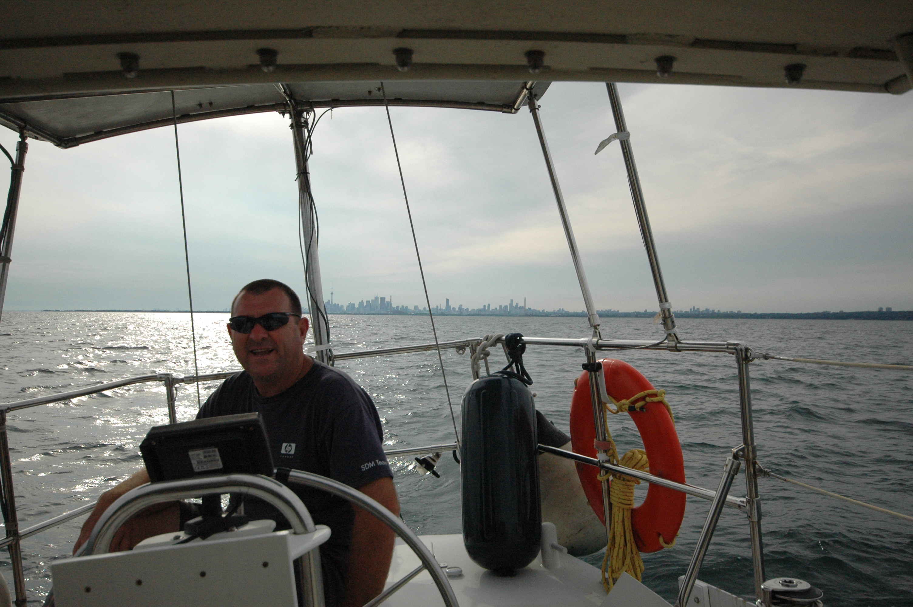 Headed to Oshawa. Gorgeous day for sailing, went by downtown Toronto and turned right in to a stiffening wind. Got to Oshawa about 3:00 in the morning only to find the marina missing. We find out in the morning it had been closed since 2002. lol.